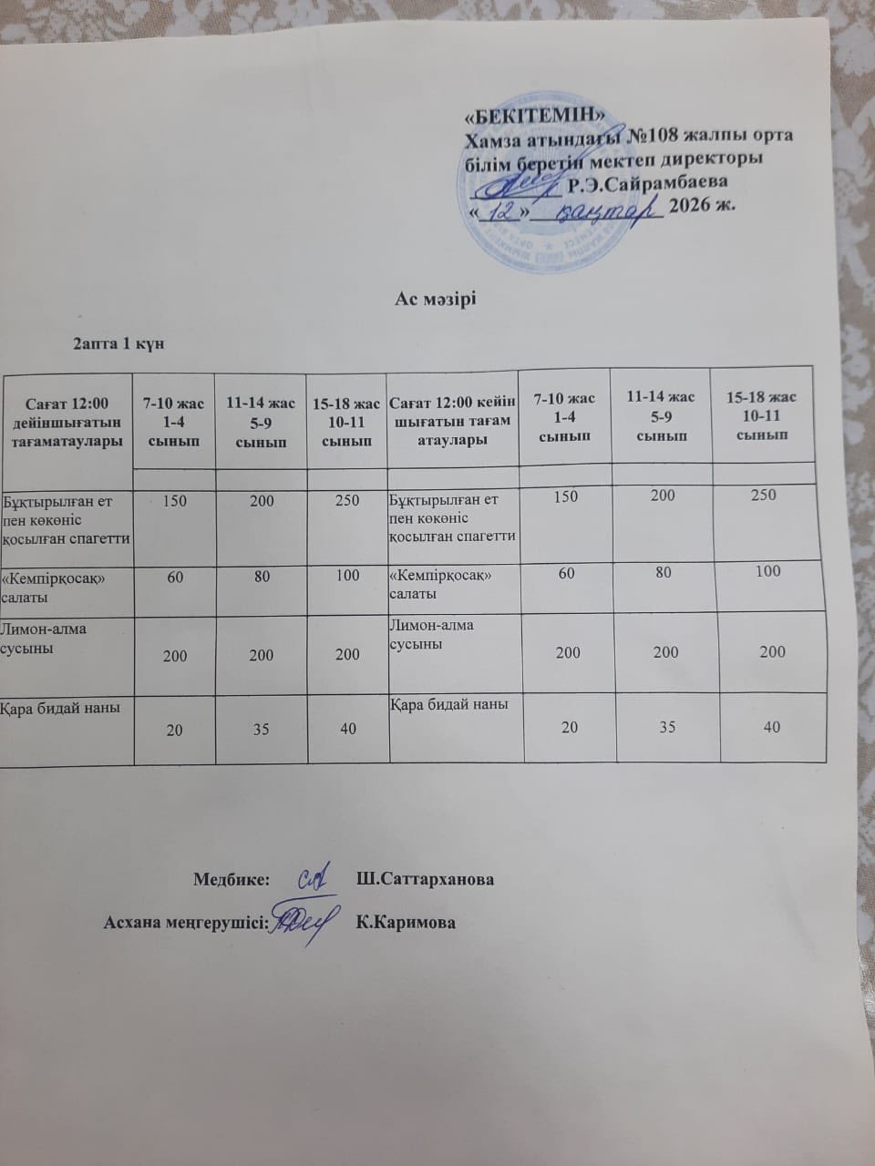12.01.2026 ж ас мәзірі.