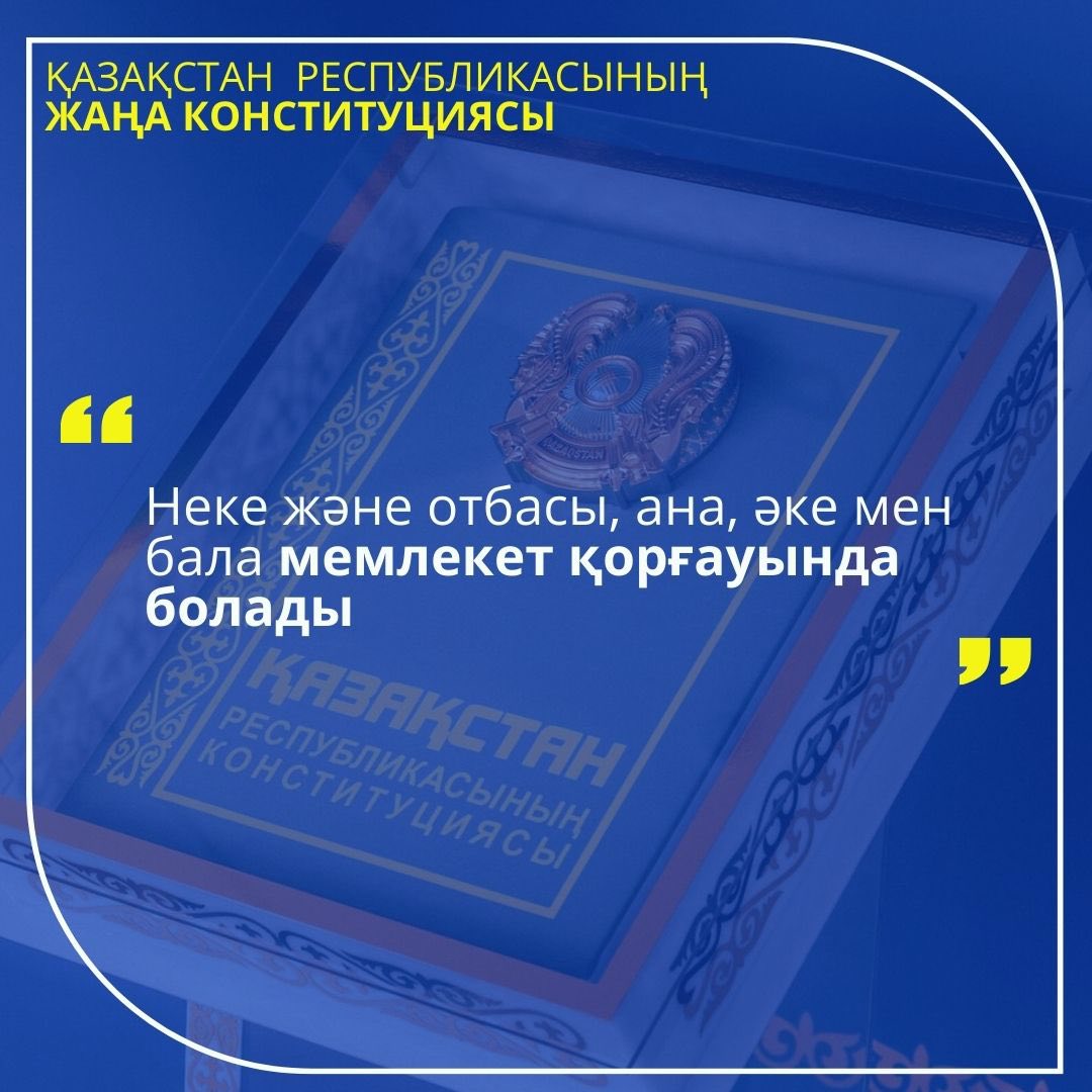 Қоғамның тұрақты дамуы мен ұлт болашағы ең алдымен отбасы институтының беріктігіне байланысты. Сондықтан жаңа конституциялық өзгерістерде неке, отбасы, ана, әке және бала мәселесіне ерекше мән беріліп, оларды мемлекеттік қорғаудың нақты құқықтық тетіктері айқындалды.