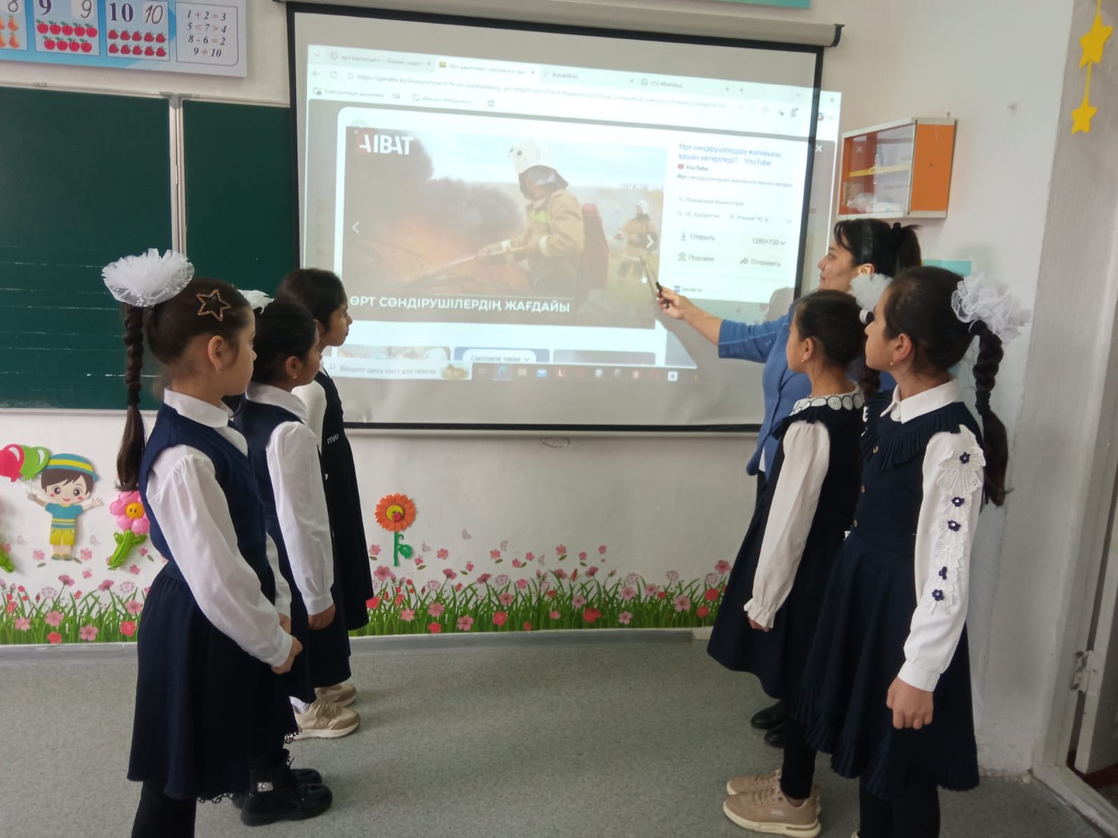 Сабақ барысында мұғалім өрттің шығу себептері, оның алдын алу жолдары және өрт болған жағдайда орындалуы тиіс негізгі әрекеттер туралы жан-жақты түсіндірді. Оқушыларға: