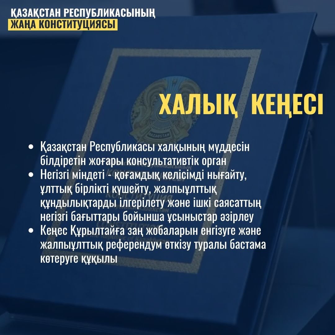 Қазақстан Республикасының жаңа Конституциясында мемлекеттік басқару жүйесін жетілдіруге бағытталған маңызды жаңалықтардың бірі – Халық кеңесінің құрылуы болып табылады. Бұл орган ел халқының мүддесін білдіретін жоғары консультативтік құрылым ретінде айқындалды.