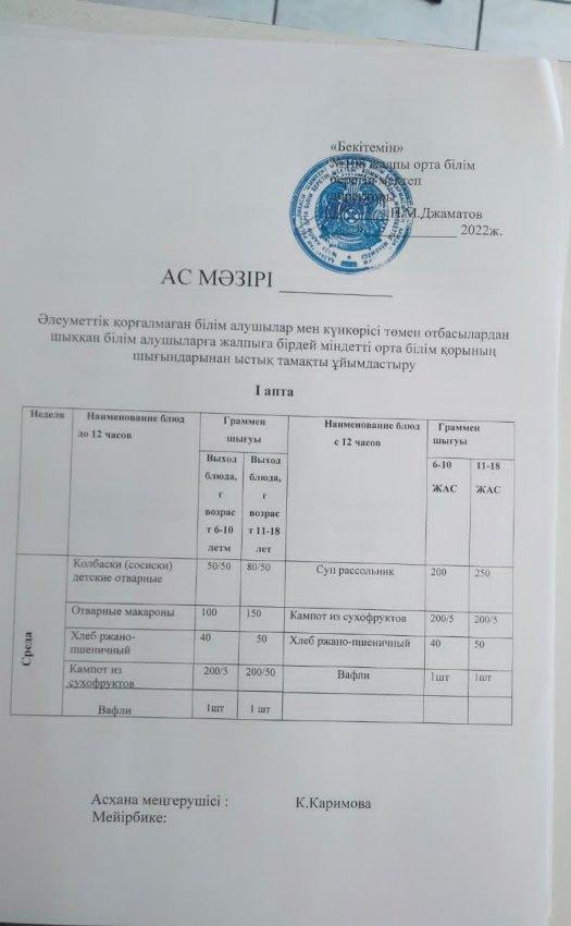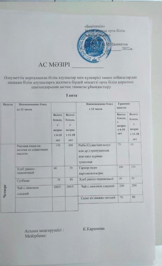 Ас мәзірі. » Хамза атындағы №108 жалпы орта білім беретін мектебі